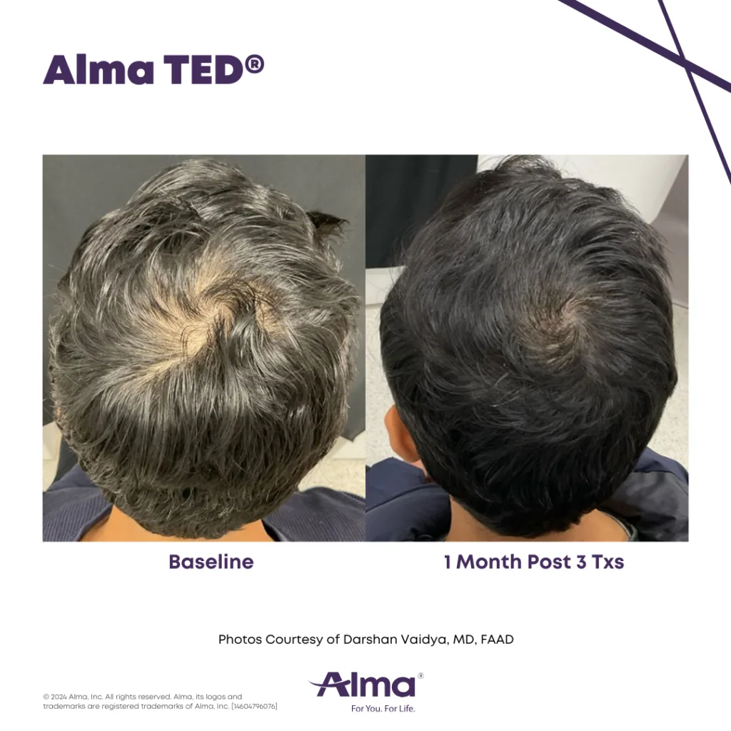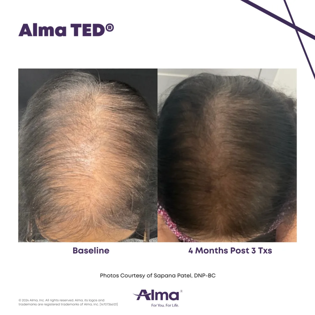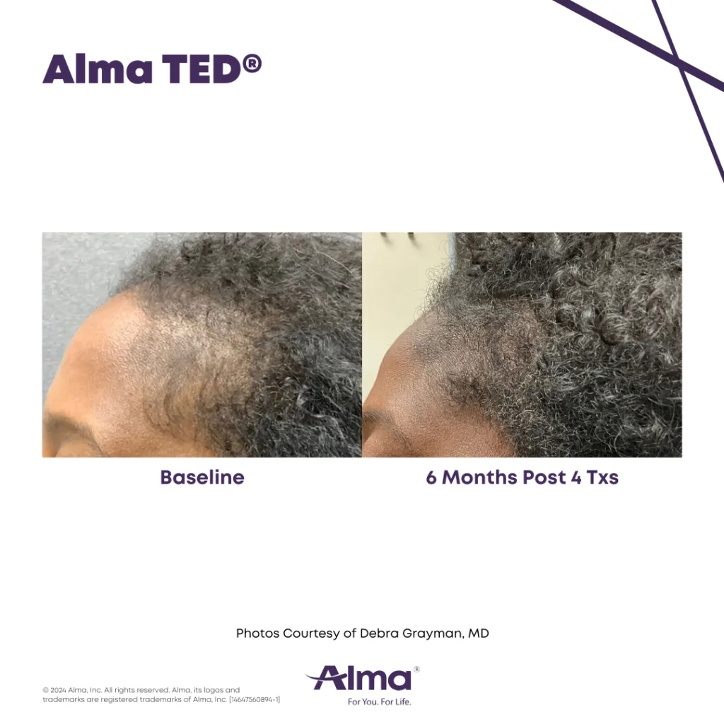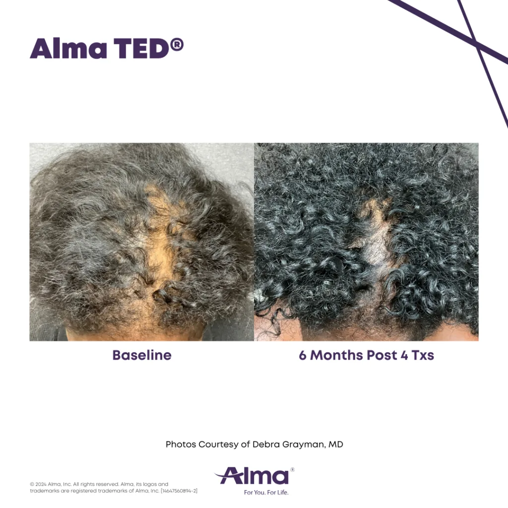 Alma TED is safe and effective for a wide range of patients experiencing hair thinning, and it offers hope even for those who may not be candidates for more invasive options.