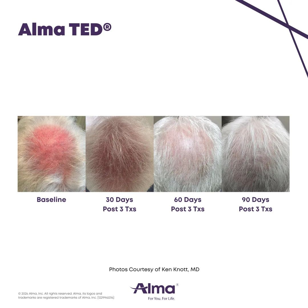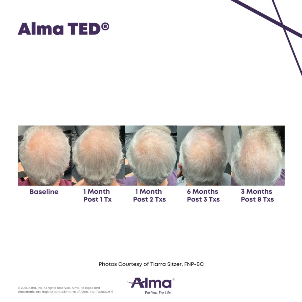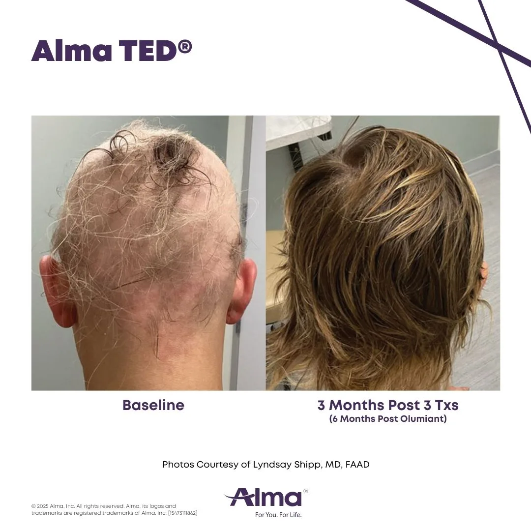 Alma TED is safe and effective for a wide range of patients experiencing hair thinning, and it offers hope even for those who may not be candidates for more invasive options.
